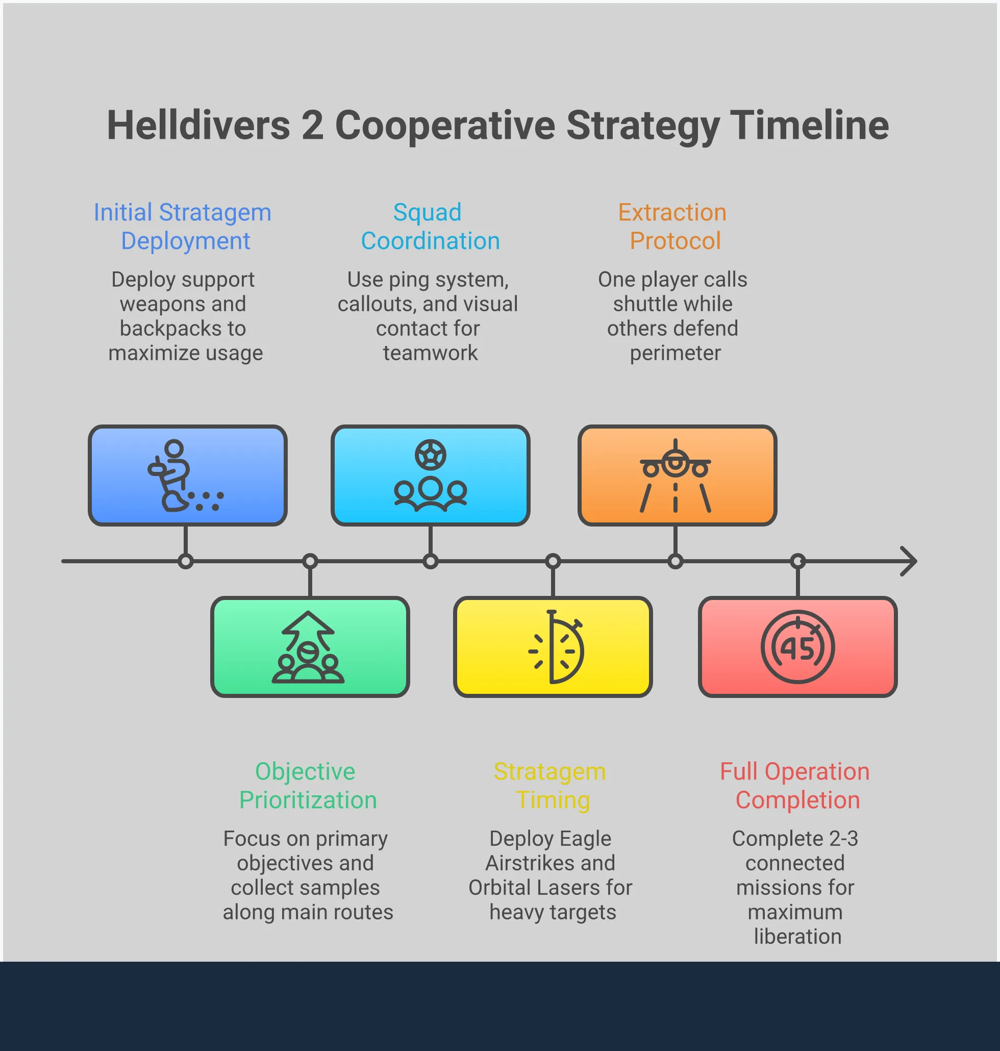 Не рассматривайте каждую миссию как отдельный бой – воспринимайте её как ключевой ход в более масштабном плане. Ваша задача – быстро завершать каждую операцию и помогать освободить планету. Тратить время на несущественные задачи может задержать всю войну. Давайте посмотрим, как вы можете стать высокоэффективным Helldiver и убедиться, что каждая миссия способствует победе.