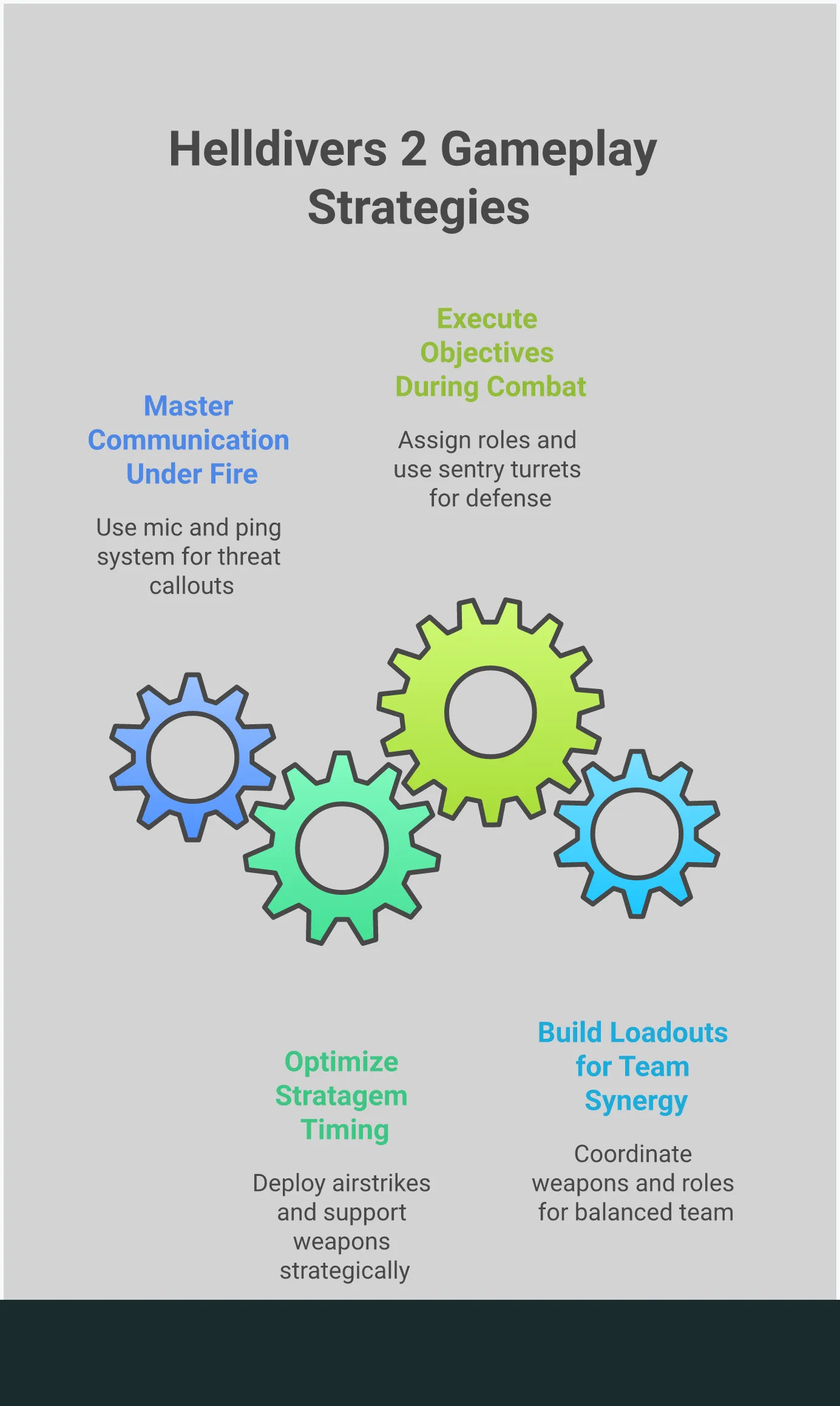Helldivers – это не просто стрельба по инопланетянам – это выполнение своих миссий, даже когда всё вокруг рушится. Новые игроки часто пытаются сначала убить каждого врага, но это ошибка. Врагов будет прибывать всё больше! Ключевой навык – научиться работать над задачами во время сражений. Именно это отделяет безопасное возвращение на Супер Землю от превращения в очередную жертву. Это означает сохранять спокойствие под давлением, жонглировать несколькими задачами и всегда следить за временем.