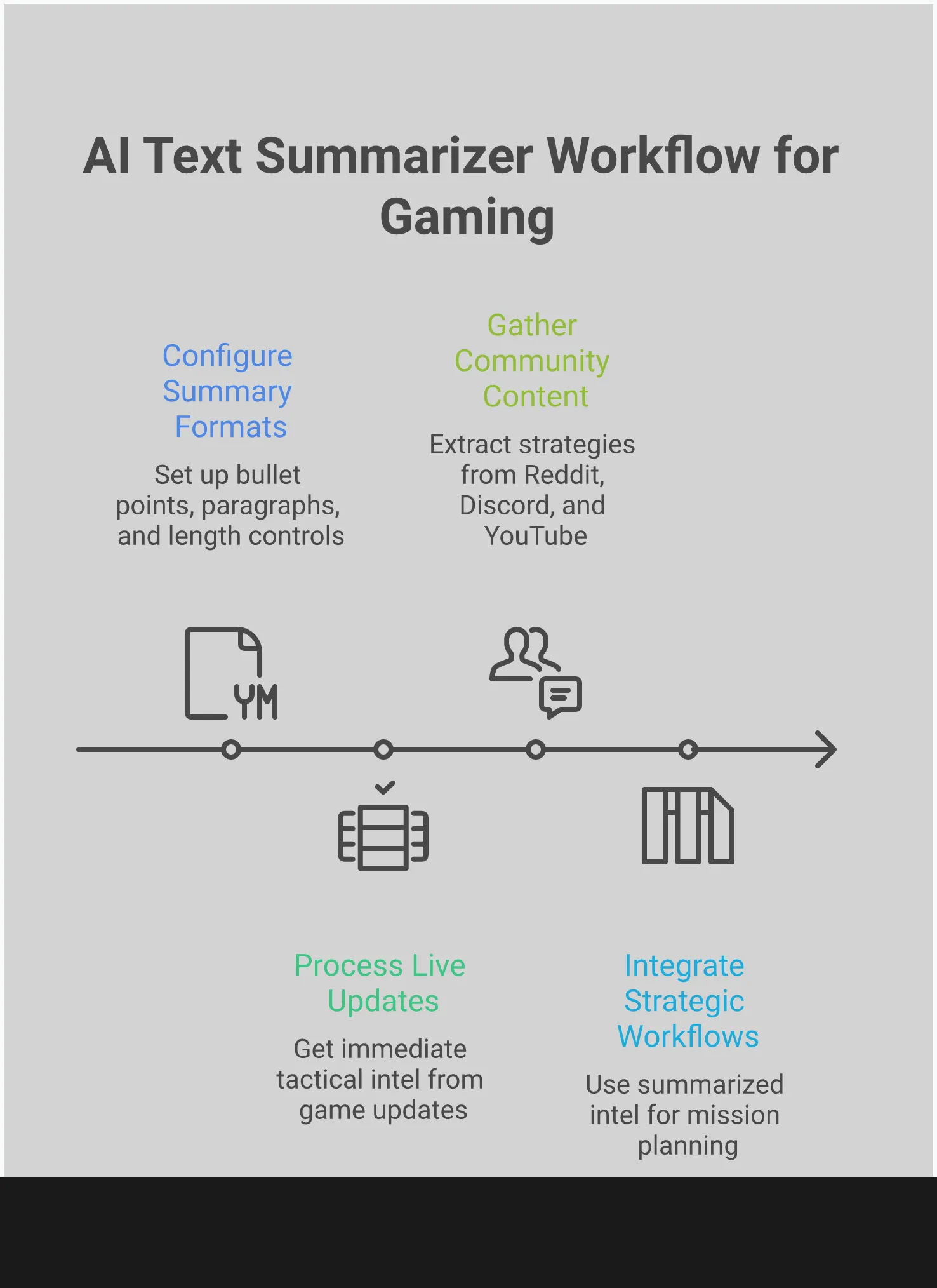 Геймерам нужны инструменты суммирования, которые понимают как мы потребляем информацию. Мы обычно не читаем вещи от корки до корки; вместо этого мы быстро просматриваем заметки о патчах, форумы и чаты в поисках полезных деталей. Лучшие инструменты позволяют настраивать сводки, чтобы сосредоточиться на том, что для вас наиболее важно, распознавать специфический для игр язык и тенденции, и предоставлять информацию практически мгновенно. Речь идет не только об удобстве – речь идет о быстрой трансформации большого объема информации в полезные идеи, которые могут улучшить вашу игру. Возможность получить основные моменты из длинного поста или руководства за считанные секунды может быть огромным преимуществом.
