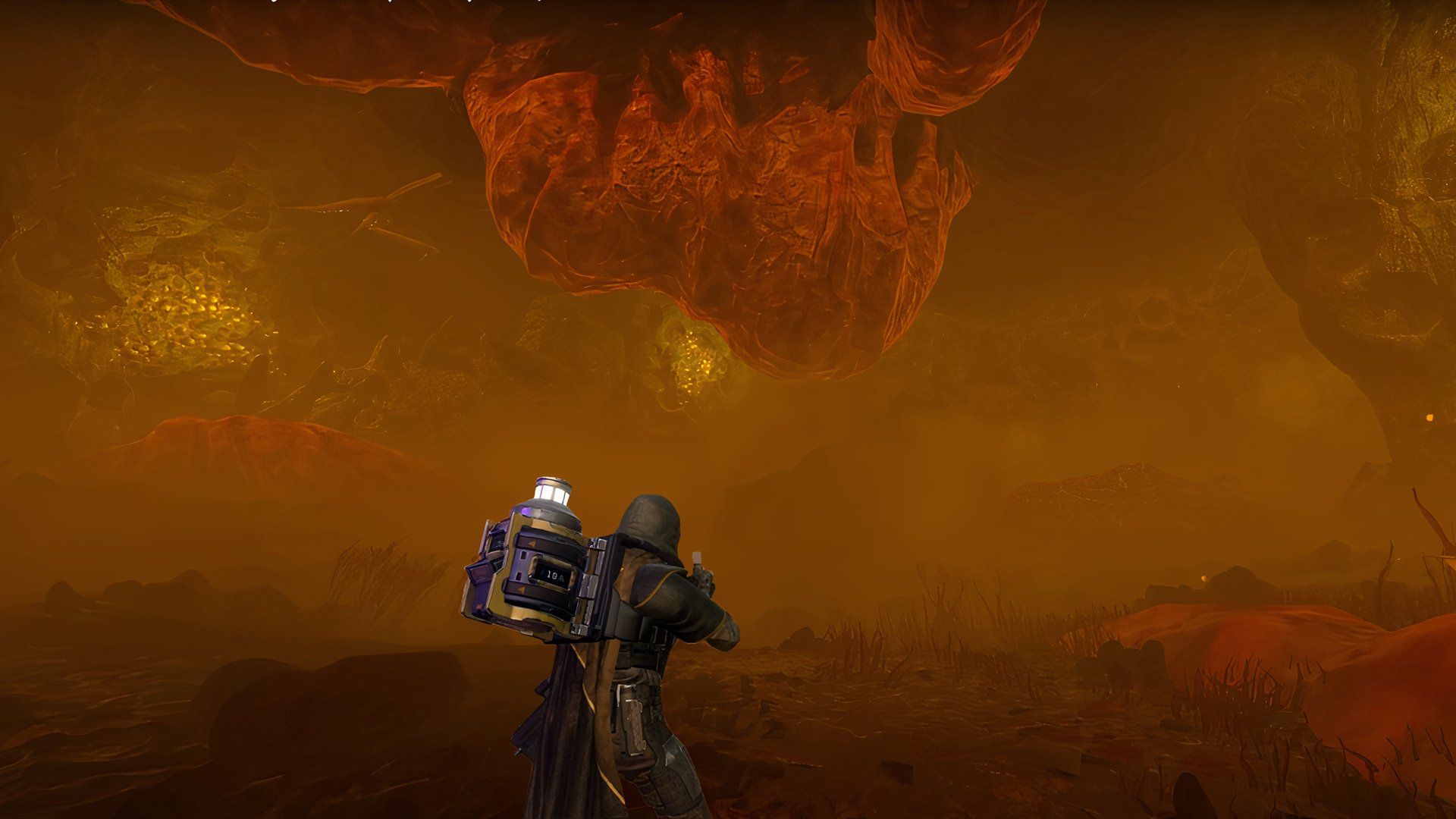 Когда вы доберетесь до конца этих толстых, оранжевых каналов, вы обнаружите массивное светящееся образование, свисающее с потолка, в которое стекаются все трубы. Оно известно как Легкое Терминидов. Чтобы уничтожить его, обязательно активируйте Переносную Адскую Бомбу прямо под ним. После активации уберите ее из инвентаря и быстро покиньте местность (или останьтесь под ней, проявив храбрость перед лицом разрушения). Если вы погибнете у Легкого, при условии, что запустили Переносную Адскую Бомбу, вы получите уведомление «Цель выполнена».