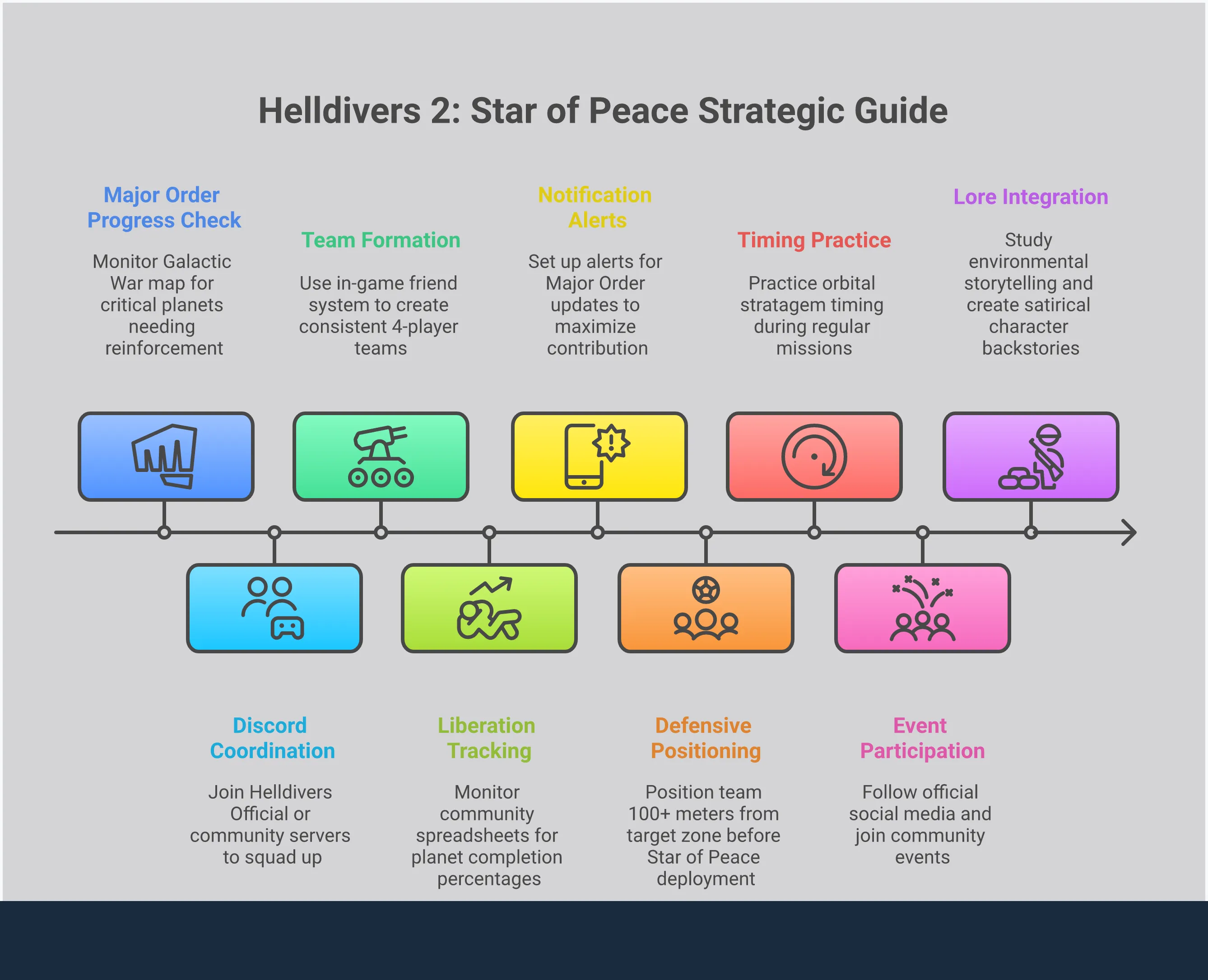 Игра приобретает мрачно-юмористический оттенок с представлением ‘Звезды мира’. В то время как правительство представляет её как инструмент мира, игроки сразу увидели иронию. Многие верят, что это так называемое улучшение на самом деле является разрушительным оружием, способным уничтожать целые планеты с орбиты. Эта идея – достижение мира посредством полного уничтожения – является классической сатирой Helldivers. Она вызвала много дискуссий и шуток в сообществе, где игроки шутливо говорят об уничтожении планет ‘мирным’ путём. Это прекрасно отражает основную тему игры: забавное, но резкое, различие между пропагандой Сверхземли и суровыми реалиями, с которыми сталкиваются солдаты на передовой.