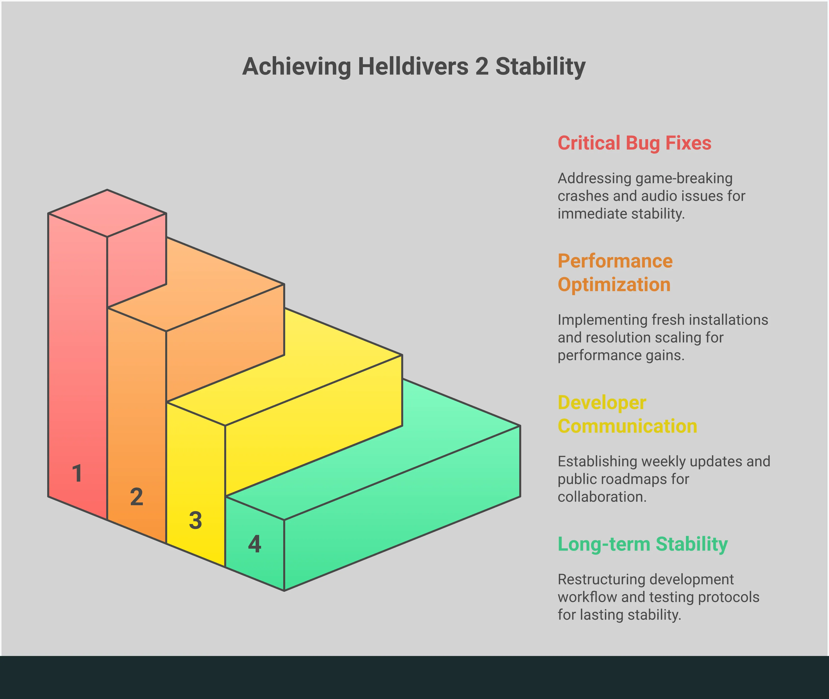 Команда придерживается долгосрочного подхода к улучшению процесса обновления игры, стремясь избежать создания новых проблем с каждым релизом. Речь идет о том, чтобы Helldivers 2 мог продолжать улучшаться и расширяться, не становясь нестабильным. Игроки могут увидеть меньше крупных обновлений за один раз, но эти обновления будут более отточенными и надежными.