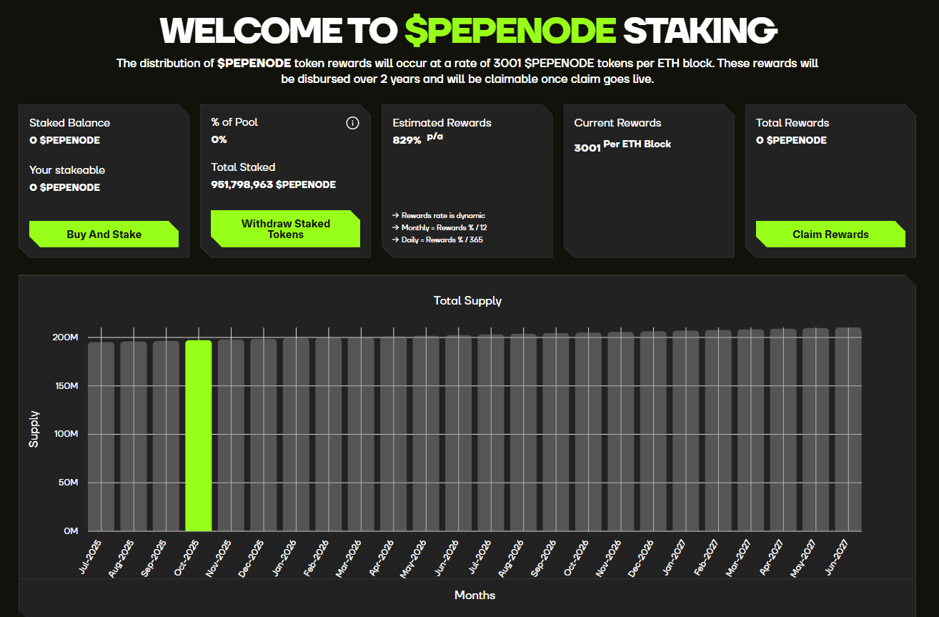 Готовы к старту? Приобретите $PEPENODE немедленно и стейкайте под 848% APY. Удача сопутствует смелым, так говорят. 😎