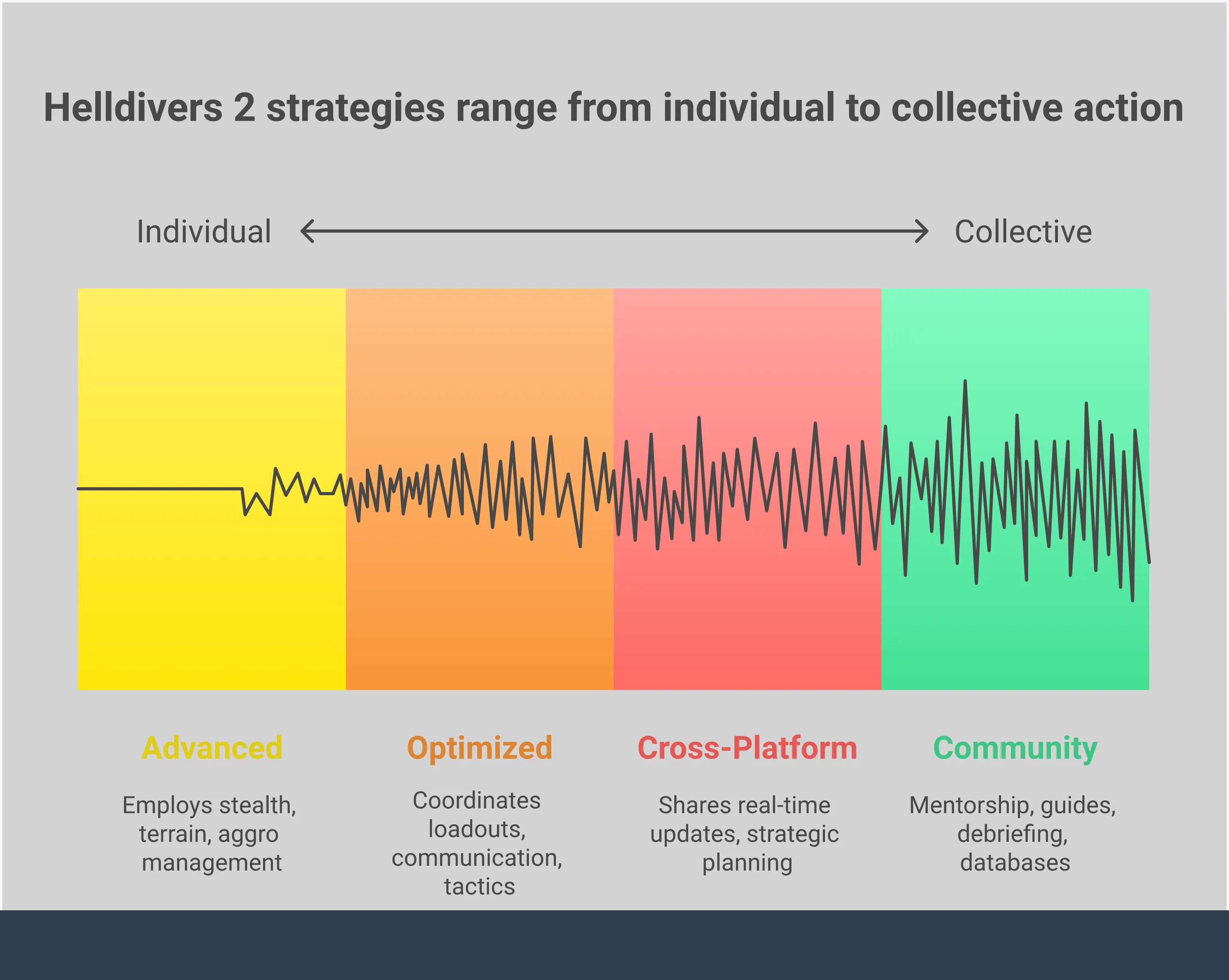 Сообщество Helldivers 2 – это не просто игра в игру, это полностью объединенные силы. Мы используем такие платформы, как Discord, Reddit и социальные сети, чтобы работать вместе, превращая отдельных игроков в мощную, скоординированную команду. Эта постоянная коммуникация позволяет нам делиться важными обновлениями, быстро менять планы в широком масштабе и заставлять каждого чувствовать себя неотъемлемой частью сообщества. Когда объявляется новая миссия, новости распространяются быстро, и игроки немедленно начинают генерировать идеи стратегий и координировать свои атаки. Эта сеть позволяет каждому игроку быть в курсе, оставаться на связи и быть готовым сражаться за правое дело.